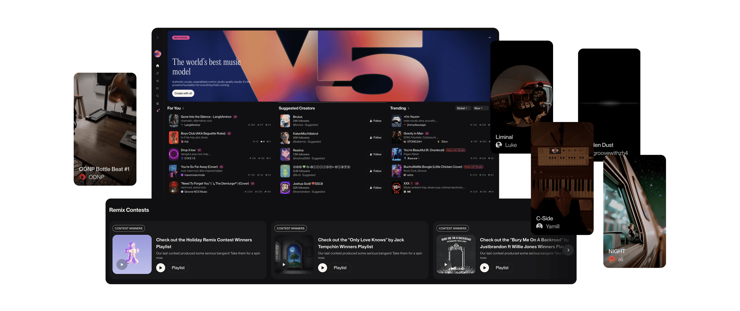 Remember mixtapes and remixes? That collaborative culture quietly died off as streaming prioritized polished singles and algorithms. AI music creation apps are not only bringing back the collaborative spirit, but doing it in ways that were never thought possible — and with no gatekeepers (yet, anyway). Suno has already stood up their own social ecosystem, letting users remix each other’s tracks, hooks, and loops, complete with contests for the crowd favorites.