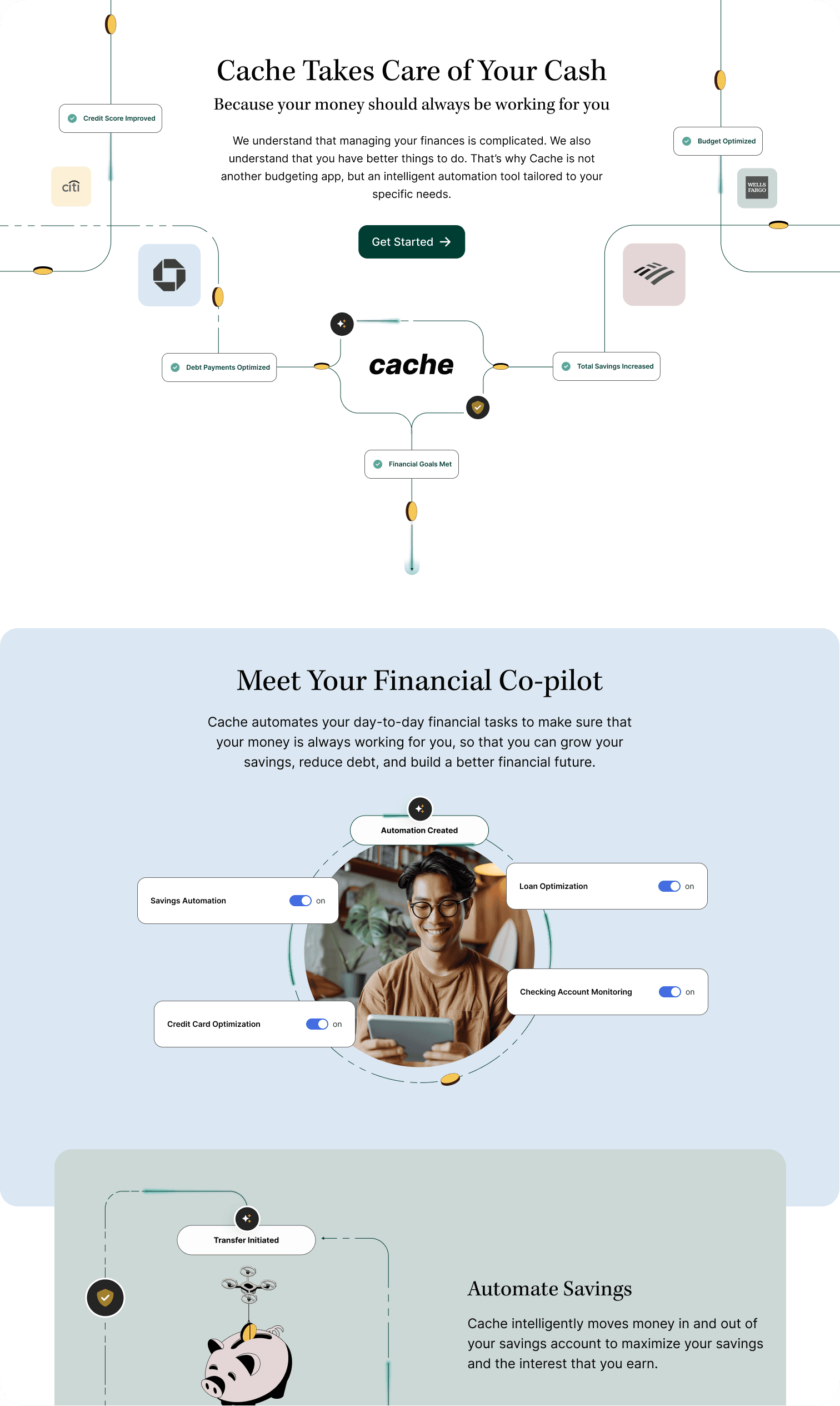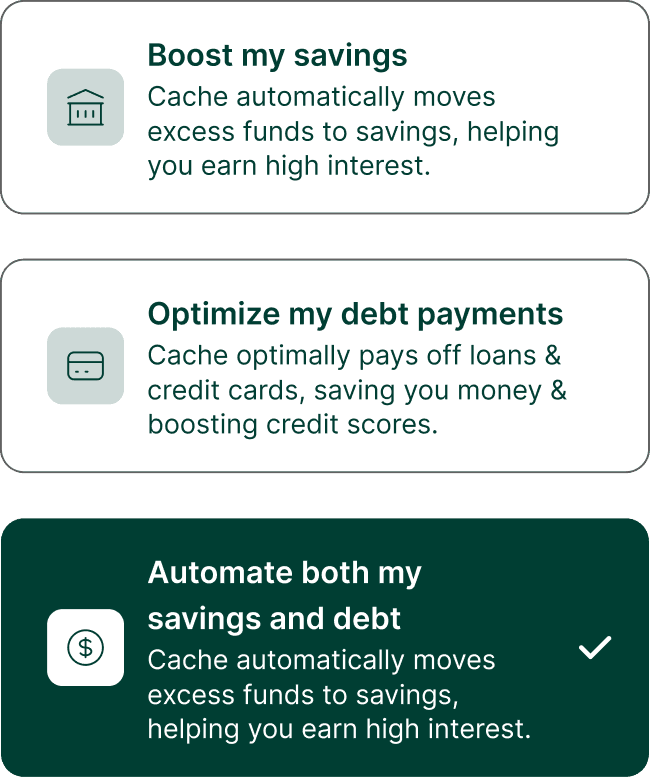 Real automation: Unlike pseudo-automation apps, Cache actively moves money across linked accounts—dynamically optimizing for interest, credit, and liquidity.