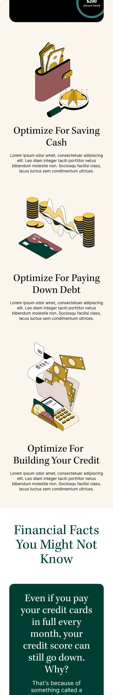 Isometric Iconography: 50+ custom illustrations visualizing cashflow, cards, calculators, and savings logic—reinforcing abstract processes through storytelling.