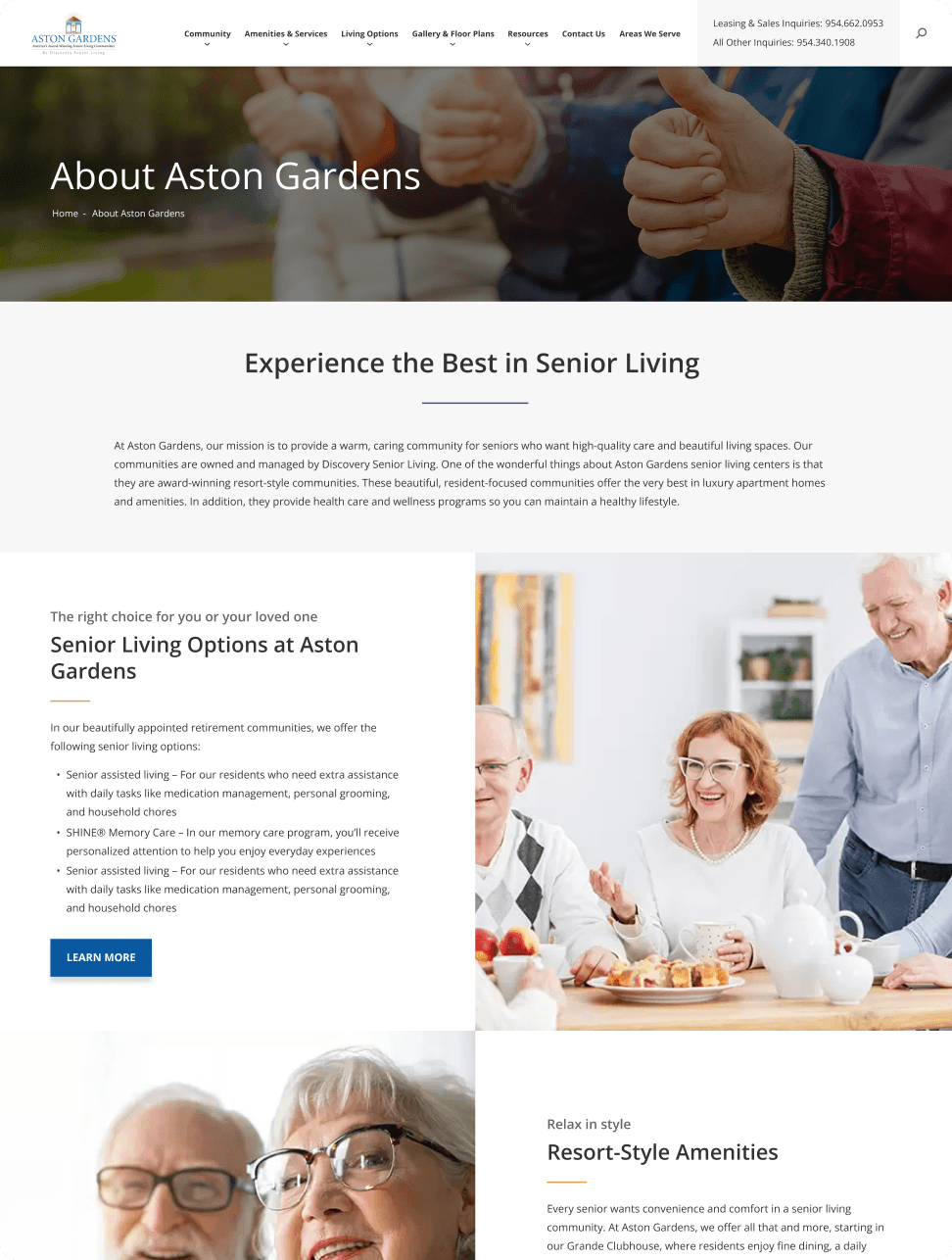 Discovery Senior Living (DSL) is one of the largest U.S. senior living management companies, operating hundreds of communities and acquiring dozens more annually. Rapid growth created a fragmented web ecosystem: legacy websites, disconnected CMS platforms (mostly WordPress), inconsistent branding, outdated design systems, and no shared architecture.